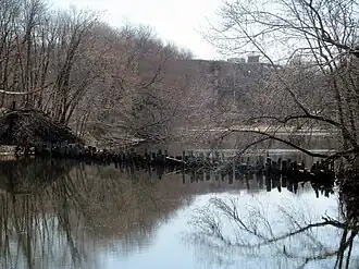 Remains of the former Essex Railroad bridge across Sutton Pond in North Andover (2015) | |||||||||||||||||||||||||||||||||||||||||||||||||||||||||||||||||||||||||||||||||||||||||||||||||||||||||||||||||||||||||||||||||||||||||||||||||||||||||||||||||||||||||