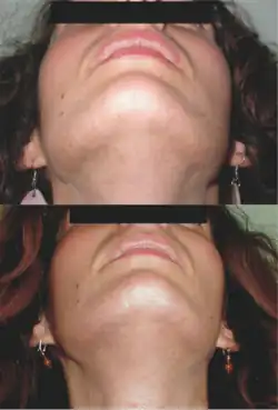 Flutamide has been found to be effective in the treatment of hirsutism (excessive body/facial hair growth) in numerous studies.[33][51][37] It possesses moderate effectiveness for this indication, and the overall quality of the evidence is considered to be moderate.[51][33] The medication shows equivalent or superior effectiveness to other antiandrogens including spironolactone, cyproterone acetate, and finasteride in the treatment of hirsutism, although its relatively high risk of hepatotoxicity makes it unfavorable compared to these other options.[2][33] It has been used to treat hirsutism at dosages ranging from 62.5 mg/day to 750 mg/day.[43] A study found that multiple dosages of flutamide significantly reduced hirsutism in women with polycystic ovary syndrome and that there were no significant differences in the effectiveness for dosages of 125 mg/day, 250 mg/day, and 375 mg/day.[33][49][52] In addition, a study found that combination of 125 mg/day flutamide with finasteride was no more effective than 125 mg/day flutamide alone in the treatment of hirsutism.[53] These findings support the use of flutamide at lower doses for hirsutism without loss of effectiveness, which may help to lower the risk of hepatotoxicity.[33] However, the risk has been found to remain even at very low doses.[12]