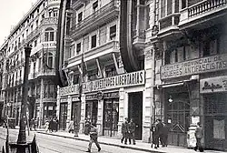 During the May Days purge of the Workers' Party of Marxist Unification (POUM) and other anti-Stalin organisations, which took place in Barcelona towards the end of the Spanish Civil War, many FIJL members were murdered by those acting under Joseph Stalin's orders.[5] After the Civil War, FIJL acted in two branches: one in exile in Paris, and one secret and illegal domestic organisation under the Franco government. Some FIJL members were associated with the militant First of May Group.[6] FIJL was banned in France in 1963.[7]