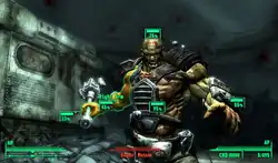 While in combat, the player can use V.A.T.S. to pause the game and target specific body parts of an enemy.