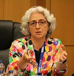 In the 1998 elections Karimi was elected to the House of Representatives for GreenLeft.[2] In the House of Representatives, she was involved in the foreign affairs, development cooperation, European affairs and defense. As such, she was vice chair of the permanent committee for European Affairs. She also was a member of the committee for justice. In 1999 she was one of two MPs (the other one was Ineke van Gent) who voted in favour of a motion of Harry van Bommel to end the NATO bombings which were part of the Kosovo War.[3]