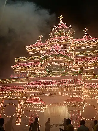 The Feast of Saint Raphael or Malakhayude Perunnal is an annual festival held in Ollur, near Thrissur, Kerala (India), since 1839. It draws thousands of pilgrims.[1] The Ollur forane church, founded in 1718 and dedicated to St Anthony, also houses a shrine of Raphael the Archangel.[2] It is one of the oldest churches built in 18th-century Kerala. The festival, held on 23 and 24 October of each year, is one of the most important Christian festivals in Kerala. The festival starts with the hoisting of the ceremonial flag on 15 October to mark the beginning of the celebrations in the church compound.[3] It is one of half a dozen Christian festivals listed by Kerala Tourism as among the attractions of the state.[4]