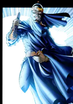 Throughout the character's history, various stories showcase or mention the early history of the character. The earliest recorded accounts of the sorcerer known as Felix Faust date back to approximately 5,000 BC when he emerged in the African empire of Kor. During this time, Kor was ruled by King Nommo, a prominent wizard and the guardian of the Flame of Life. Faust, driven by malevolent ambitions, engaged in a fierce battle with Nommo to harness the Flame's power for himself. Nommo absorbs the Flame, defeats Faust, and banishes his spirit to another dimension.[3]