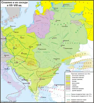 Zones of control by Slavic tribes and Bulgars in the late 7th century