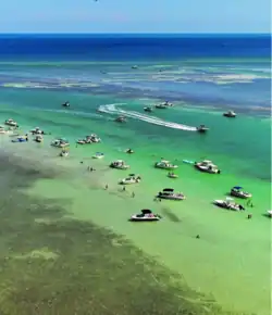 The Florida Keys National Marine Sanctuary is a U.S. National Marine Sanctuary in the Florida Keys. It includes the Florida Reef, the only barrier coral reef in North America[1] and the third-largest coral barrier reef in the world. It also has extensive mangrove forest and seagrass fields. The Florida Keys National Marine Sanctuary, designated on December 28, 1990,[2] was the ninth national marine sanctuary to be established. The Florida Keys National Marine Sanctuary protects approximately 2,900 square nautical miles (9,947 km2; 3,840 sq mi) of coastal and ocean waters from the estuarine waters of South Florida along the Florida Keys archipelago and the Hawk Channel passage, encompassing more than 1,700 islands, out to the Dry Tortugas National Park, reaching into the Atlantic Ocean, Florida Bay, and the Gulf of Mexico.