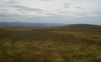 The views from the summit are extensive, if unremarkable due to the featureless, flat moorland surroundings. The summit is marked by a trig point. At the northern end of the summit area lies a ruined stone tower.[1]