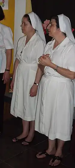 The Franciscan Sisters of the Family of Mary, (Polish: Zgromadzenie Sióstr Franciszkanek Rodziny Maryi; Latin: Congregatio Sororum Franciscalium Familiae Mariae), also known as Siostry Rodziny Maryi, RM, is a Polish female religious institute.[1] The congregation was established in St. Petersburg during the Partitions of Poland with the mission to help Polish children stricken by hunger in the Russian Empire, and to save the impoverished Catholic parishes persecuted by the Tsarist authorities.[2][3][4] The congregation was founded in 1857 by the Warsaw archbishop, Zygmunt Szczęsny Feliński, who was beatified by John Paul II during his last pilgrimage to Poland in 2002, and canonized by Benedict XVI in 2009. The sisters base their life on the Franciscan ideals of service to God and to the common people, especially the poorest. The spirit of scarcity is evident in their own standard of life. Dwellings and rooms of the Sisters are furnished in such way as to make the poor and the rich feel humbled. The young postulants don't contribute dowries. The nuns wear black habits with a purple rope.[1] In Poland the Sisters of the Family of Mary conduct educational activities in nursery schools and rehabilitation centres, help at children's homes as well as hospitals and care homes. They help disadvantaged and the homeless by running shelters. They also work in parishes as religion teachers, organists and assistants, as well as in seminaries.[1]