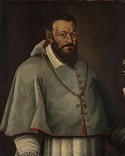 Krasiński was born in 1525 to Jan Krasiński, a stolnik. The family claimed the Ślepowron coat of arms.[2] As Vice-Chancellor of the Crown, Franciszek Krasiński played a political role during the Union of Lublin.[3] After becoming Bishop of Kraków in 1572, Krasiński was the only bishop to sign the Warsaw Confederation which famously granted religious freedoms in the Polish-Lithuanian Commonwealth.[4] Krasiński offered his signature in order to prevent religious violence, an outcome that the act was generally able to maintain for the duration of the Commonwealth period.