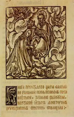 Skaryna arrived in Prague by 1517. According to one hypothesis, he had been a student at Charles University in Prague, but there is no documentary evidence of this. In the same year, he rented a printing house from a merchant named Severin[8][9] in Prague and started publishing a new translation of the Bible with his own prefaces.