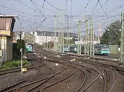 • Heddernheim Depot (German: Betriebshof Heddernheim) is located to the north of Heddernheim station, next to the A Line, and is used by trains from services on the A Line and the northern section of the D Line (U1, U2, U3, U8 and U9). It opened in 1910 as a tram depot and became the first U-Bahn depot in 1968 when the network opened.[7]