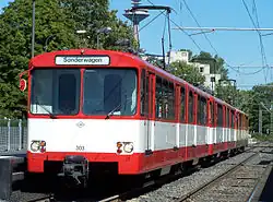 The U3 Class was based on the U2, but slightly longer (24.49 m), with a body made entirely of steel, and without any steps for access from low platforms.[13] Duewag built 27 vehicles in 1979 and 1980,[14] which were originally deployed on the U4 and transferred to the U6 in 2015.[13]