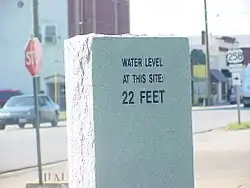 Flood level marker in downtown Franklin
