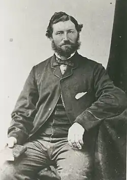 George Bain Johnston was born at Cockenzie, in the county of Haddington, Scotland, and was educated at Steel's Hospital in the parish of Tranent.[1] At the age of 15 he served an apprenticeship on the schooner Mary Donaldson, under Captain James Donaldson, in the employ of Captain Hew (or Hugh) Francis Cadell (c. 1790 – 27 April 1873). He was one of a group of Scotsmen who left Scotland in 1853 as one of the crew of the Lioness, a small River Mersey steamer of 70 tons register, which was purchased by Cadell to be used for towing purposes in Port Melbourne. The vessel was rigged as a three-masted schooner in Scotland and sailed out to Melbourne. Other members of the crew of the Lioness, all associated with the opening of the Murray, were James Ritchie, Thomas Johnston, John Barclay,[2] John McDonald, William Barker and John Ritchie. The four first named returned to Scotland for Captain Cadell in December 1853 in the Admiral, returning to Australia in 1854 in the brig Lady Emma, with the river steamers Gundagai and Albury in sections as freight. These vessels were assembled at Port Adelaide, and steamed through the Murray mouth. On 18 October 1857, the wives of these gentlemen left Scotland in the sailing ship Planter, arriving in Melbourne on 12 January 1858. The first vessel to come alongside to welcome these lady pioneers was the Lioness, the little craft that had left Scotland four years previously with the husbands of all the members of the party. These ladies had booked their passages in the Great Britain, but prior to sailing this vessel was commandeered by the British authorities for service as a troop ship in connection with the Indian mutiny.[3][4]