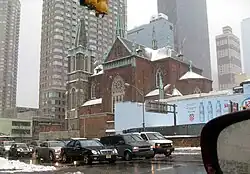 ![]() The Church of Saints Cyril & Methodius and St. Raphael, the former Church of St. Raphael, in the midst of the incoming traffic to the Lincoln Tunnel, Manhattan | |