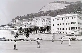 The 1950s saw an increase in clubs, and the Gibraltar Cricket Association was formed in 1960.[5] They were elected to associate membership of the ICC in 1969.[4] Essex County Cricket Club visited after the conclusion of the 1973 English domestic season, and played a Rock XI in a one-day game, winning by 178 runs.[6] Visits by English sides of various ability levels have continued ever since.[5]