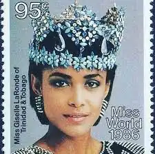 Giselle Jeanne-Marie Laronde-West (born October 23, 1963) is a Trinidadian model, Stenographer and beauty queen who won Miss World 1986, representing Trinidad and Tobago. She became the second woman from that nation to win an international beauty pageant, after Janelle Commissiong Miss Universe 1977 and the only one to date, to win Miss World title. The pageant was held in London, UK at the Royal Albert Hall on November 13, 1986.