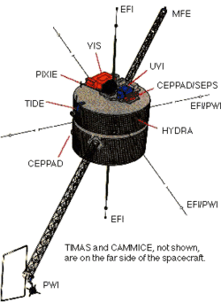 The Polar satellite, launched on February 24, 1996, is in a highly elliptical, 86 deg inclination orbit with a period of about 17.5 hours. Within the Sun-Earth Connections fleet, Polar has the responsibility for multi-wavelength imaging of the aurora, measuring the entry of plasma into the polar magnetosphere and the geomagnetic tail, the flow of plasma to and from the ionosphere, and the deposition of particle energy in the ionosphere and upper atmosphere. Polar was launched to observe the polar magnetosphere and, as its orbit has precessed with time, has observed the equatorial inner magnetosphere and is now progressing toward an extended southern hemisphere campaign.[3]