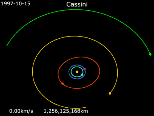 Animation of Cassini's trajectory from 15 October 1997 to 4 May 2008