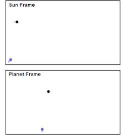 Translating this analogy into space: in the planet reference frame, the spaceship has a vertical velocity of v relative to the planet. After the slingshot occurs the spaceship is leaving on a course 90 degrees to that which it arrived on. It will still have a velocity of v, but in the horizontal direction.[2] In the Sun reference frame, the planet has a horizontal velocity of v, and by using the Pythagorean Theorem, the spaceship initially has a total velocity of 2v. After the spaceship leaves the planet, it will have a velocity of v + v = 2v, gaining approximately 0.6v.[2]