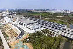 Guangzhou Lianhuashan railway station (simplified Chinese: 广州莲花山站; traditional Chinese: 廣州蓮花山站; pinyin: Guǎngzhōu Liánhuāshān Zhàn; Jyutping: Gwong2zau1 Lin4faa1saan1 Zaam6; lit. 'Guangzhou Lotus Hill station') is a station on Guangzhou–Huizhou intercity railway and Pazhou branch of the Guangzhou–Shenzhen intercity railway located in Panyu District, Guangzhou, Guangdong, China.[1][2] The station opened on 26 May 2024, and is operated by Guangdong Intercity Railway Operation Co., Ltd.[3][4][5]