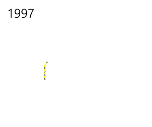 The earliest efforts to build an underground rapid transit system in Guangzhou date back to 1960. In the two decades that followed, the project was brought into the agenda five times but ended up abandoned each time due to financial and technical difficulties.[8][9] Preparation of what would lead to today's Guangzhou Metro did not start until the 1980s, and it was not until 1993 that construction of the first line, Line 1, officially began.[9][10] Line 1 opened four years later in 1997 with five stations in operation.[11]