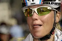 Gunn-Rita grew up in the village of Bjørheimsbygd in Strand, Rogaland.[1] She had her first MTB ride in April 1995 at 22 years old . Gunn-Rita has won a total of 18 Olympic, World- and European Championship Gold Medals. She currently rides for the German-based MTB Team, Multivan Mérida Biking Team. She has been riding on Mérida bikes since January 2002 and has been a professional cyclist for 20 years. She has won the overall World Cup 4 consecutive years (2003–06) and has a total of 30 World Cup wins, beating Juliana Furtado's seemingly unbeatable record set in the 90s.[2] Some of her greatest achievements are the Olympic gold medal in 2004 in Athens, 9 World Championship Gold medals, 8 European Championship Gold medals, and many silver medals. The last rainbow jersey she won in 2013, Worlds Marathon in Kirchberg (AUS).