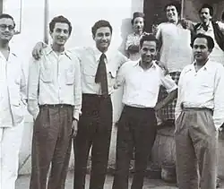 For his next project, Dutt directed and starred in Baaz (1953). Though the film did not perform very well at the box office, it brought together what would be known as the Guru Dutt team, who performed well in subsequent films.[7] The team included various filmmakers discovered and mentored by Dutt, including: Johnny Walker (actor-comedian), V.K. Murthy (cinematographer), Abrar Alvi (writer-director), Raj Khosla (writer), Waheeda Rehman (actress), among others. Dutt's next films, however, were blockbusters: Aar Paar in 1954; Mr. & Mrs. '55 in 1955; C.I.D. then Sailaab in 1956; and Pyaasa in 1957. Dutt played the lead role in three of these five films.