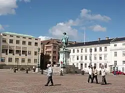 Gustaf Adolfs torg ("Gustaf Adolf's square") is a town square located in central Gothenburg, Sweden. It was named Stortorget (the Big Square) until 1854 when a statue of the founding father of Gothenburg, king Gustavus Adolphus of Sweden was raised. Surrounding the square are the city hall, including the law court extension (by Gunnar Asplund), the bourse, and the main harbour canal of Gothenburg.