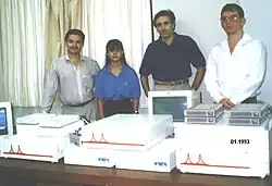 CRNet routing equipment at UCR: Abel Brenes, Ana L. Chavarría, de Téramond and Mario Guerra (April 1993).