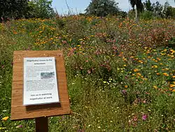 Hügelkultur is a German word meaning mound culture or hill culture.[3] Though the technique is alleged to have been practiced in German and Eastern European societies for hundreds of years,[1][4] the term was first published in a 1962 German gardening booklet by Herrman Andrä.[5] Inspired by the diversity of plants growing in a pile of woody debris in his grandmother's garden, Andrä promoted "mound culture" as opposed to "flatland culture".[5] This was also posited as an easy way to utilise woody debris without burning, which was illegal.[5] Andrä appears to have been influenced by Rudolf Steiner's biodynamic agriculture. Steiner explained his biodynamic philosophy as developed through meditation and clairvoyance, on the grounds that his methods were “true and correct unto themselves.”[6] Andrä quotes a 1924 lecture on biodynamics by Steiner, which describes mixing of soil with composting or decaying material in earthen hillocks.[5] Joined by author Hans Beba, another German gardener, "Hill Culture - the horticultural method of the future" was revised and republished several times in the 1970s and 1980s.[5][7]