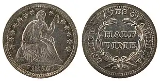 13. ^ "Seated Liberty Half Dime". Archived from the original on 2011-05-21. Retrieved 2011-06-02.