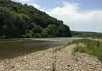 The park is situated in the foothills of the northern slope of the Carpathian Mountains. The park's territory is a patchwork of 16 tracts along the Dniester River, and up into the hills along several large tributary rivers.[2]