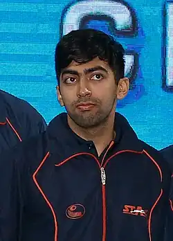 Harmeet Desai (born 19 July 1993) is an Indian table tennis player. He is from Surat.[2][3][4][5] In 2018 Commonwealth Games held at Gold Coast, Australia, He won gold in men's team event with Sharath Kamal, Anthony Amalraj, Sathiyan Gnanasekaran & Sanil Shetty[6] and bronze in Men's doubles event with Sanil Shetty.[7] Harmeet Desai won the men's singles title at Commonwealth Table Tennis Championships 2019 at Cuttack, defeated favorite Sathiyan Gnanasekaran to claim the men's singles title.[8] He has been honoured with the Arjuna Award by the Ministry of Youth Affairs and Sports, Government of India in 2019.[9]