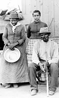Harriet Tubman, Nelson Davis, and behind them Gertie Davis, circa 1887, at her home in Auburn, New York