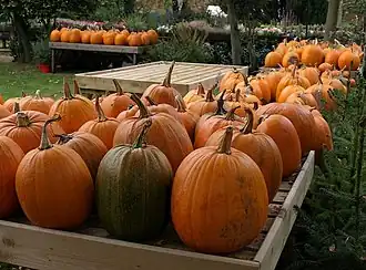 The Harvest Festival is a celebration of the harvest and food grown on the land in the United Kingdom. It is about giving thanks for a successful crop yield over the year as winter starts to approach. The festival is also about giving thanks for all the good and positive things in people's lives, such as family and friendships.[1][2] Harvest Festivals have traditionally been held in churches but also in schools and sometimes in pubs. Some estates and farms used to hold the harvest festival in a barn. In some towns and villages the harvest festivals[3] are set so that the different churches do not have it on the same day. People bring in produce from their garden, allotment or farm, and even tinned and packaged food. Often there is a Harvest Supper at which some of the produce may be eaten. Typically surplus produce is given away to a local charity, hospital or children's home, or auctioned for charity.