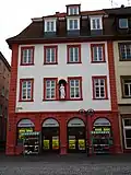The Hauptstrasse runs right through the Altstadt from Bismarckplatz in the west to the Karlstor in the east, with a slight bend following that of the Neckar river. Between Theaterstrasse and Universitätsplatz, there is a slight rise, which is caused by the alluvial fan of the now subterranean Klingenteichbach stream. The street is around 1.8 km long.[1] It is crossed by numerous streets running from north to south (mostly called Gassen, "alleys") and there are five squares along its route. One of these, the Marktplatz was planned as a market place from the beginning, while the other four - Anatomiegarten, Universitätsplatz, Kornmarkt, Karlsplatz - were created through the demolition of buildings.