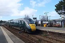 Hayle is served by regular Great Western Railway trains between Penzance and Exeter St Davids. There is a single service each weekday operated by CrossCountry to Edinburgh Waverley.[4] From 18th May 2025, there will be at least 2 Crosscountry trains each way on Weekdays and Saturdays and around one on Sundays each way.[5]