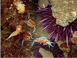 Hermissenda opalescens, also known as the opalescent nudibranch or opalescent sea slug, is a species of brightly coloured sea slug or nudibranch, a marine gastropod mollusc in the family Facelinidae.[2]