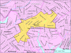 - ^ Barron, James. "If You're Thinking Of Living In: Five Towns", The New York Times, July 10, 1983. Accessed February 17, 2025. "The basic five are Lawrence, Cedarhurst, Woodmere, Hewlett and Inwood. But the area also includes some unincorporated communities and two tiny villages, Hewlett Bay Park and Woodsburgh, that are not added to the final total."