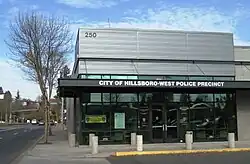 HPD operates two stations, a West Precinct located in downtown on 10th Street near the Washington/Southeast 12th Avenue MAX Station. The Tanasbourne Precinct is located in the Tanasbourne neighborhood on the city's eastside.[31] Divisions include a patrol unit, detectives, emergency response team created in 1993, K-9 units, reserve units, and a Citizen's Enhancement Team, among others.[32] The department utilizes automobiles, motorcycles, and bicycles in its enforcement mission. Some detectives and staff drive hybrid vehicles, as HPD's part in helping the City of Hillsboro go "green."