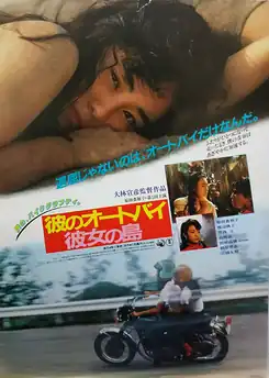 His Motorbike, Her Island (彼のオートバイ、彼女の島, Kare no ōtobai, kanojo no shima) is a 1986 Japanese romance film directed by Nobuhiko Obayashi, based on a 1977 novel by Yoshio Kataoka. Produced by Kadokawa Haruki Jimusho, the film stars Kiwako Harada, Riki Takeuchi, Noriko Watanabe and Tomokazu Miura. Takeuchi, in his acting debut,[1][2] plays a motorbike enthusiast who falls in love with a young woman (Harada) after teaching her how to ride. The film frequently switches between black-and-white and color photography.[3]