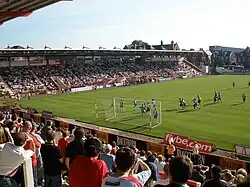 In Tisdale's first season in charge, he took City to Wembley Stadium for the first time in the club's history.[70] During the season, City won 36 points in the first half of the season and 42 points in the second half.[71] The 2006–07 season was not without controversy however, with January signing Lee Elam being headbutted by then Kidderminster Harriers manager Mark Yates.[72][73] City won the game 2–0.[74]