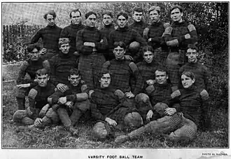 - ^ The Official NCAA Records Book credits Washington & Jefferson as being the first documented college football team to use uniform numbers in 1908,[18] although photographic evidence indicates that numbers were worn by the 1907 WUP football team.