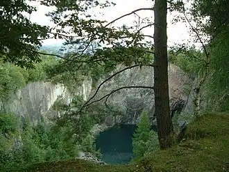 The slopes of Holme Fell include the massive disused green slate quarry at Hodge Close, located at NY317017. The quarry closed just before the start of the Second World War. It has flooded chambers and tunnels which are used by cave divers for sport, but it is a dangerous location and several divers have died over the years, after becoming lost in the murky waters of the tunnels. The quarry is also used by rock climbers and offers some excellent Extreme routes such as ‘First Night Nerves’ and ‘Wicked Willie’.