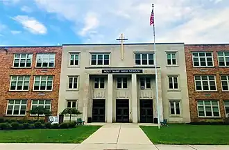 Founded in 1914, Holy Name was the first Catholic high school in the Cleveland area to enroll both male and female students. The school was originally located on Harvard and Broadway in Cleveland, but in 1977 moved to Queens Highway in Parma Heights, Ohio, to accommodate its growing enrollment.[1] The move included taking over the all-female Nazareth Academy, which was run by the Congregation of the Sisters of St. Joseph.