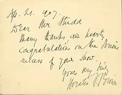 Lord Ronald Gower stayed with Brown in Venice in the 1890s and noted in his diary: "Every morning Horatio Brown goes to his work at the Archives, and I go a-sight-seeing." Brown spent part of the summer of 1895 staying with Gower in London, when they visited picture galleries together.[16] In 1899, his portrait was painted by Henry Scott Tuke.[1]