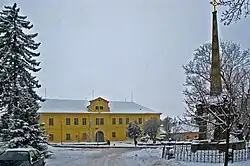 At the beginning of the 19th century, the House of Schwarzenberg was divided into two princely-titled lines (majorats).[1] This division was already foreseen in the will of Prince Ferdinand (1652-1703). However, the absence of two male heirs until Joseph II and Karl I Philipp inhibited the execution. The senior branch, which held not only the Palais Schwarzenberg in Vienna, but also the Dominions of Scheinfeld, Krumlov, Frauenberg and Murau, died out in the male line in 1979 upon the death of Joseph III of Schwarzenberg, who was the 11th Prince of Schwarzenberg. The cadet branch, which was established by Karl Philipp, Prince of Schwarzenberg at Orlík Castle, continues to the present day.