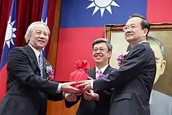 Hsu was appointed the President of the Judicial Yuan on 25 October 2016 after his nomination was approved by legislators after a week of questioning. His selection was challenged with allegations of unconstitutionality, as Hsu had previously served on the Judicial Yuan.[8][9] Article V of the Additional Articles of the Constitution governs judicial appointments, and reads, in part "Each grand justice of the Judicial Yuan shall serve a term of eight years, independent of the order of appointment to office, and shall not serve consecutive terms." The Tsai Ing-wen administration argued that Hsu was reappointed, and never served consecutive terms.[10] The Alliance for Civic Oversight of Supreme Court Justice Nominees approved of Hsu's selection, as did the New Power Party.[11][12] Subsequently, the Legislative Yuan voted 72-2 for him to assume the post and for Tsai Jeong-duen to be the Vice President.[13] Hsu was inaugurated as the President of the Judicial Yuan on 1 November 2016 in a ceremony attended by Vice President Chen Chien-jen. Hsu appointed Lu Tai-lang (Chinese: 呂太郎) the secretary-general of the Judicial Yuan and Chou Chan-chun (Chinese: 周占春) as the head of the Judges Academy.[14]
