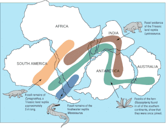 The Huab Formation is correlated with a series of formations in the Pelotas and Paraná Basins in southeastern Brazil, deposited in a larger basinal area, 150 million years before the break-up of Pangea. The abundance of Glossopteris and Mesosaurus fossils are characteristic of the Gondwanan correlation across present-day South America, Africa, Antarctica and Australia.