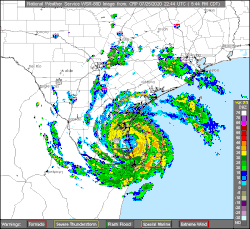 Hurricane Hanna making its second landfall in Texas as viewed from weather radar